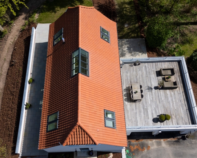 Ons kleurenpalet begint met natuurrode dakpannen. Alleen dakpannen van gebakken klei mogen zich ‘natuurroot’ noemen. Deze kleur kan in verschillende nuances voorkomen, net als in de natuur bij bijvoorbeeld bloemen en bladeren, en is de meest oorspronkelijke kleur.