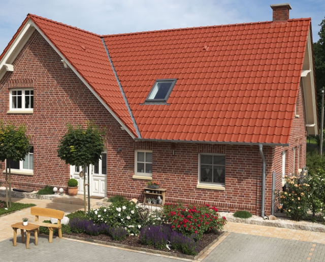 Deze tijdloos moderne vlakke dakpan TIEFA XL TOP® wordt gekenmerkt door zijn zachte welving en harmonisch rustige, duidelijk gestructureerde oppervlakte-effect. Het flexibele middenformaat van de populaire TIEFA XL TOP® is bovendien bijzonder economisch en universeel toepasbaar - en niet alleen voor platte hellende daken.