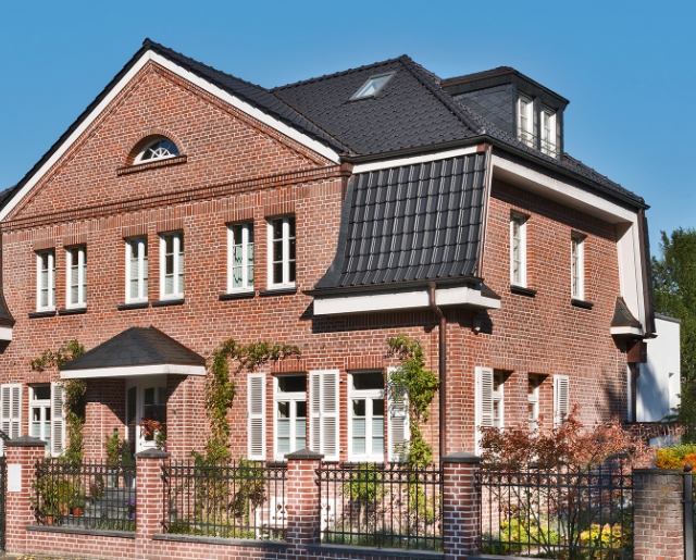Deze tijdloos moderne vlakke dakpan TIEFA XL TOP® wordt gekenmerkt door zijn zachte welving en harmonisch rustige, duidelijk gestructureerde oppervlakte-effect. Het flexibele middenformaat van de populaire TIEFA XL TOP® is bovendien bijzonder economisch en universeel toepasbaar - en niet alleen voor platte hellende daken.