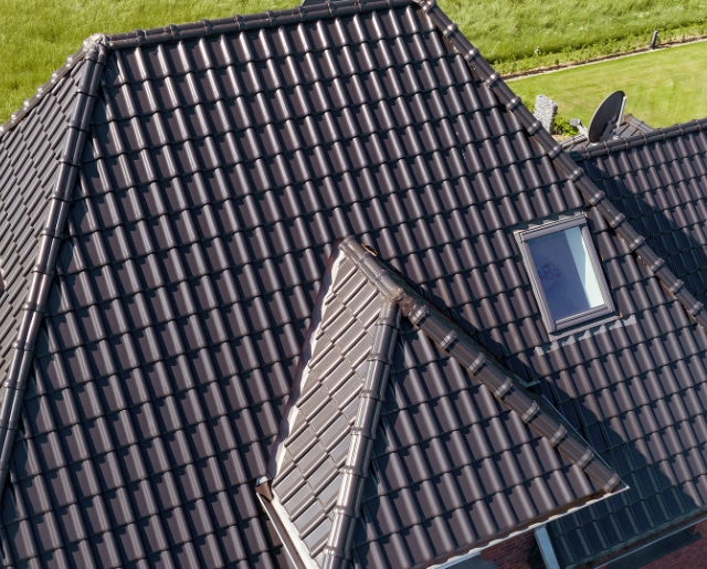 Met onze sinter-engobe nr. 21 GRIJS krijgt je dak een zijdematte glans.