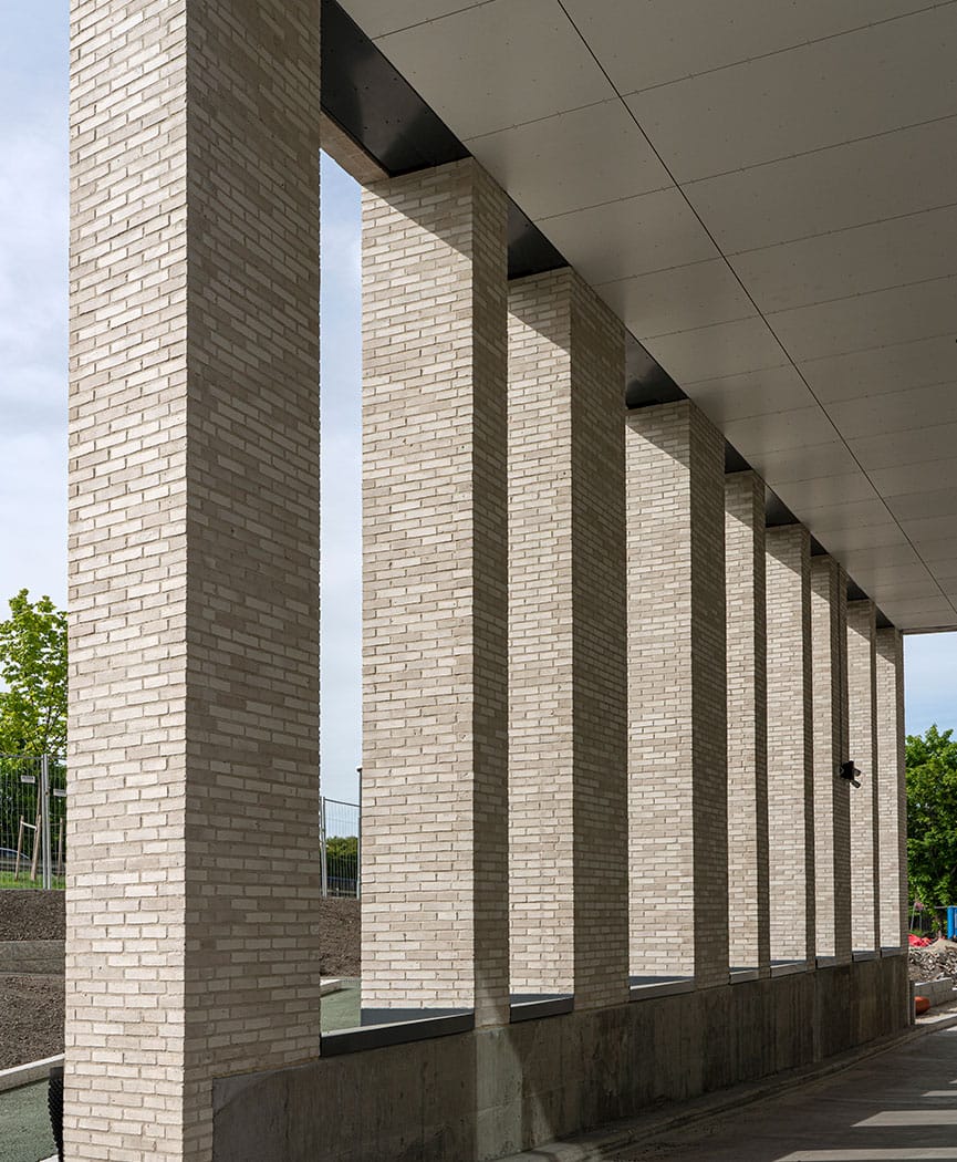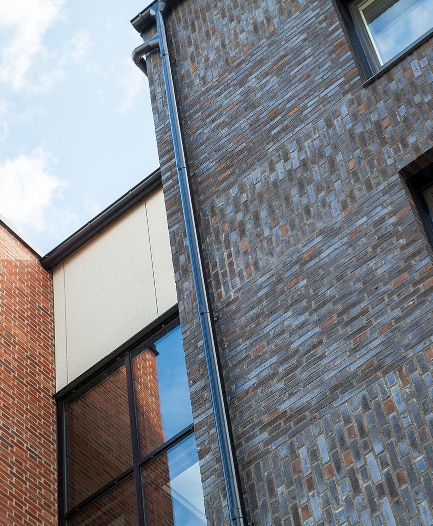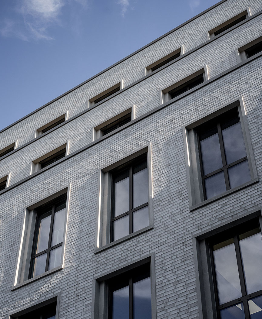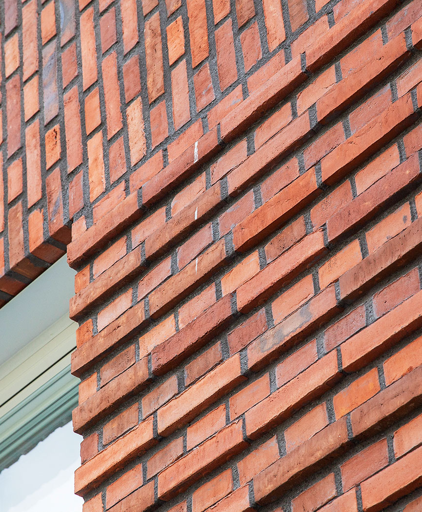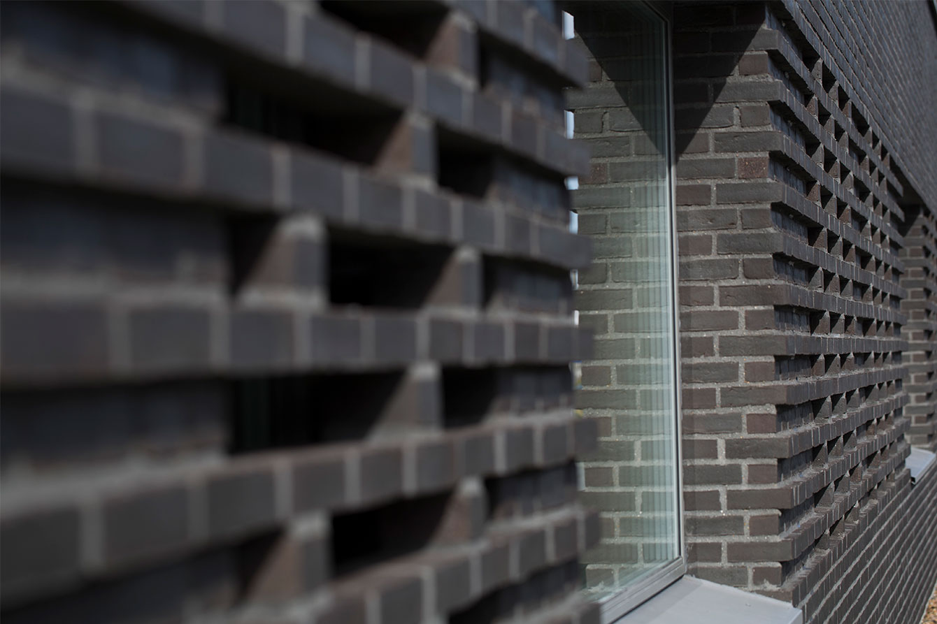 One of the ideas was that the rounded window sash would lead in trailing light along the facades. On the northern façade, the creepers are rounded on both sides, to maximize both morning and evening light. On the eastern façade, the slip is rounded to the south, so that the southern light is directed in, while to the north, the slip has a straight edge. Above each gate, we used the brick to create a brick pattern on the facade, different patterns for each gate. This resulted in each gate having its own expression and identity.