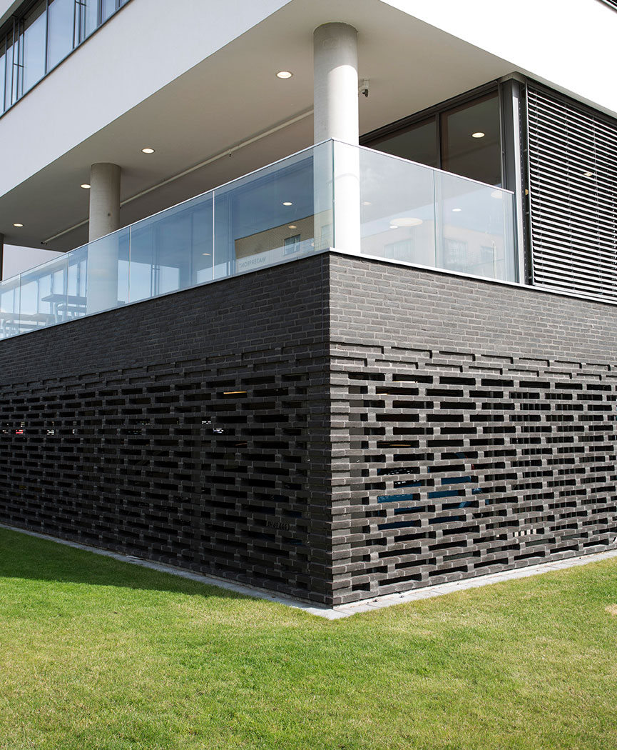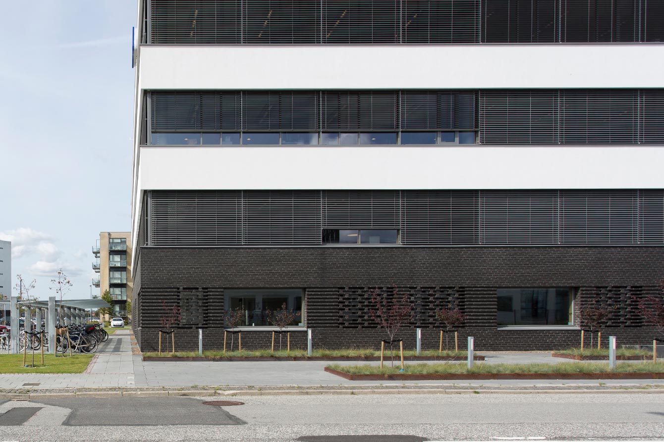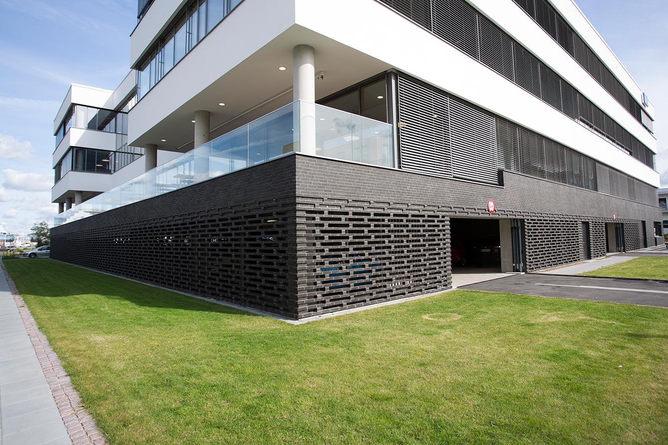 The 5.969 m² building is Alfa Laval’s head office with a ground floor-car park and three floors of offices. We assisted the architect and executive contractor with technical development of retaining principles. We also supplied the project with black RT 548 bricks.