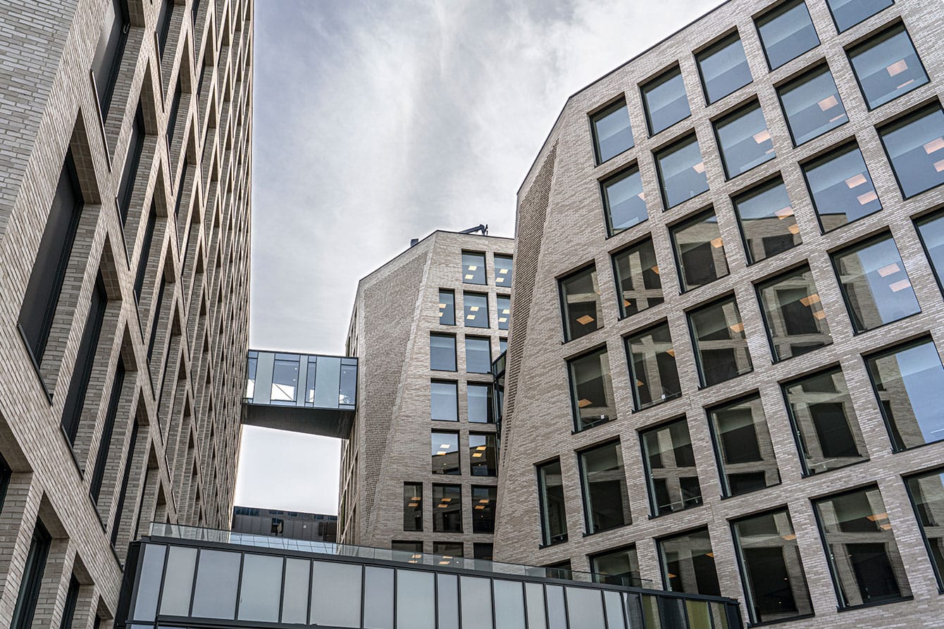 The significant angled corners of each block create a harmonic sense of invitation, that ensures full outsight for occupants and the maximum intake of daylight. Fyrstikkalleen is built with a focus on sustainable design and materials that meet energy class A specifications. The project has achieved a BREEAM excellent rating. Another focus area is allowing for flexibility – in order to accomodate evolving trends in office layout. The importance of communication, collaboration and random social encounters are important themes here.