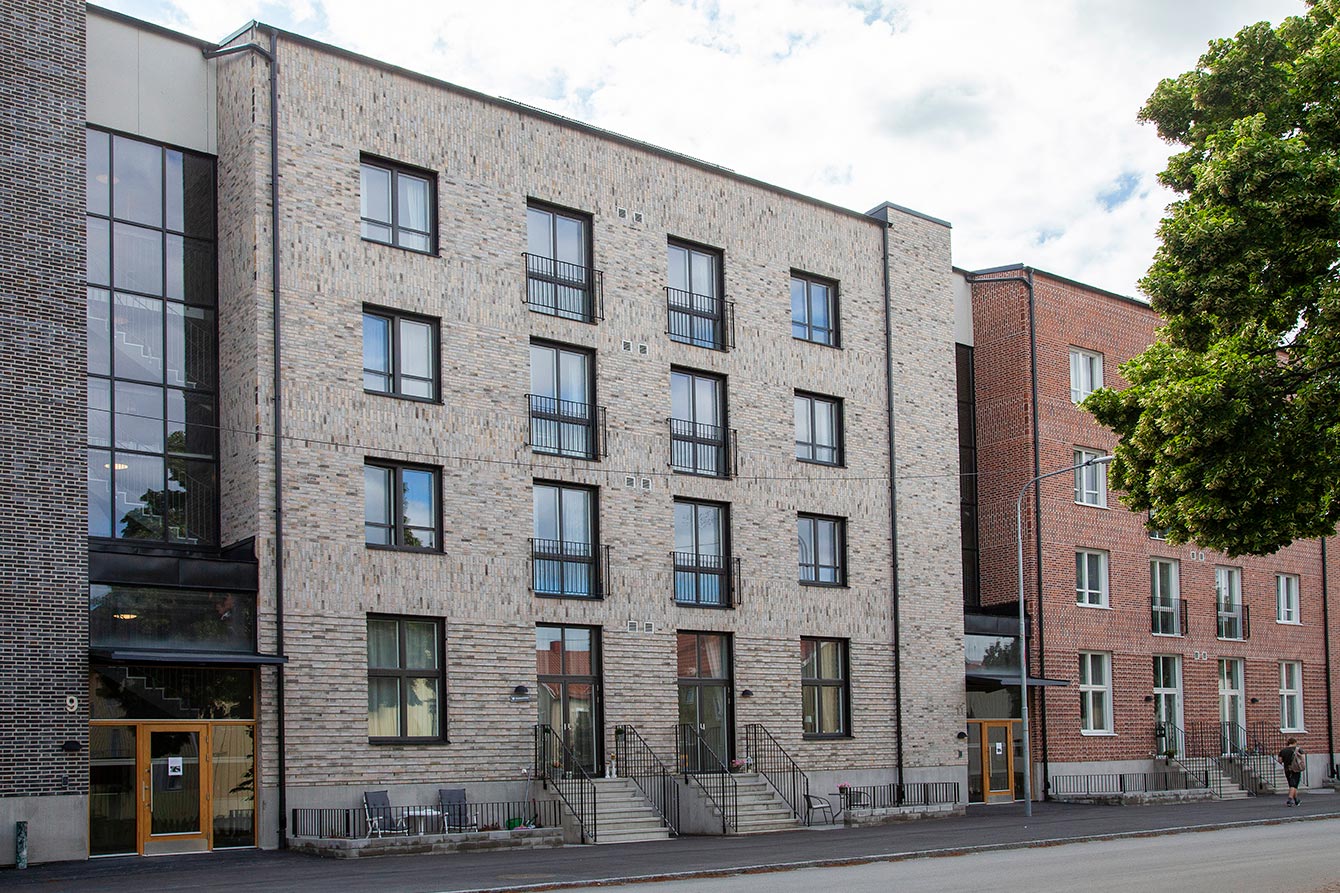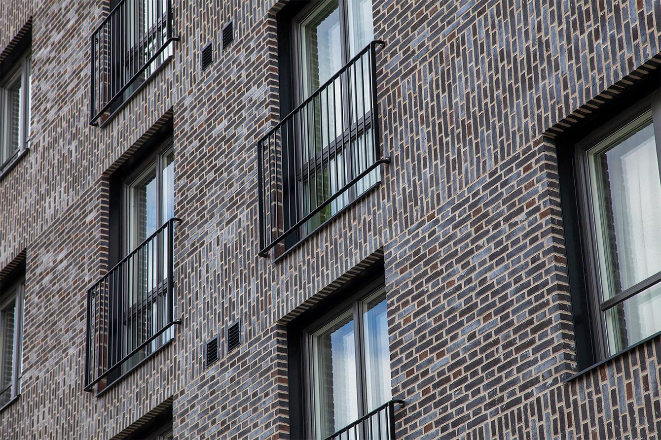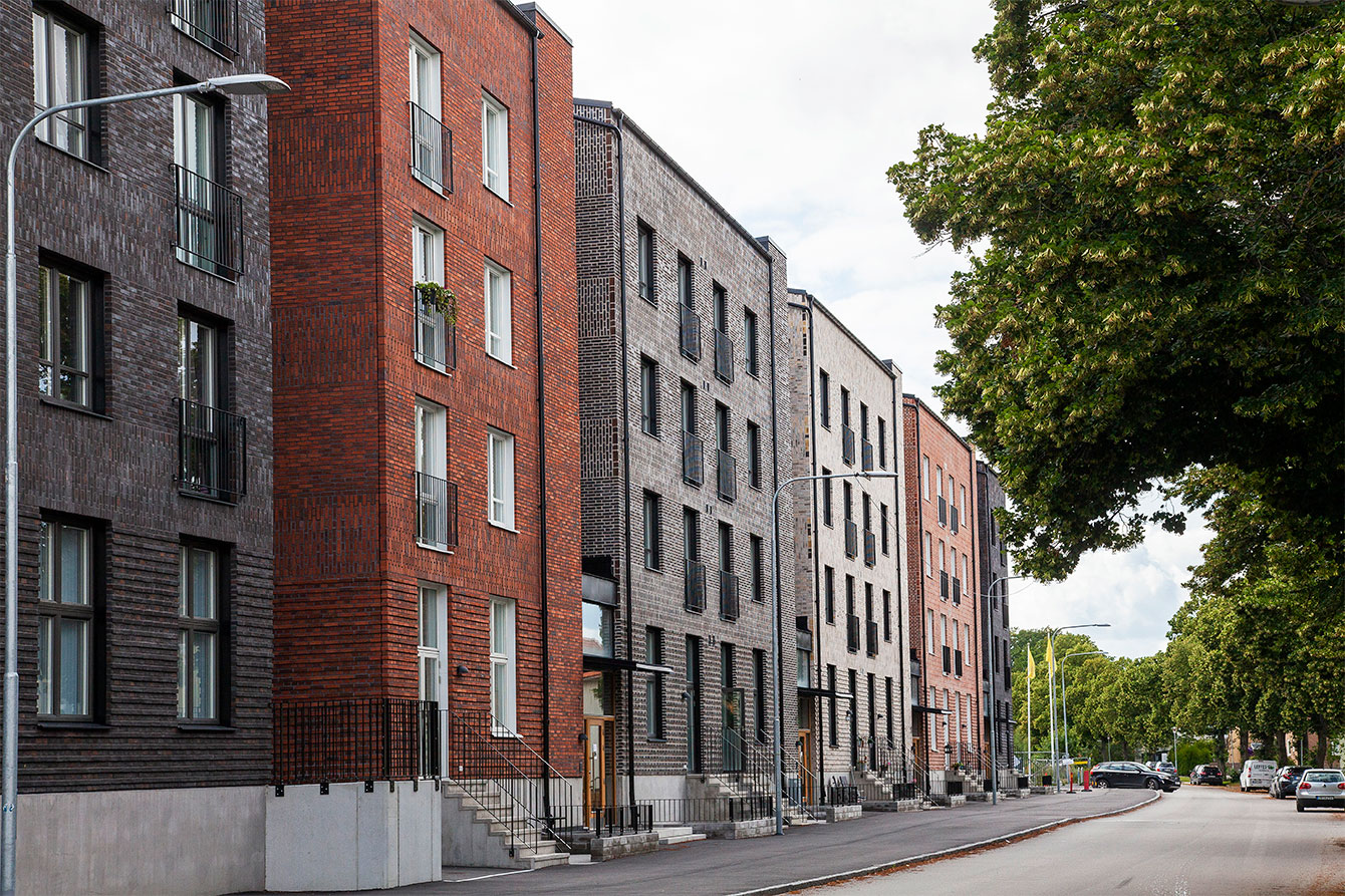 Choosing brick as a facade material has many advantages. We think that a brick facade gives a feeling that the houses are solid and lavish and that in turn gives a social sustainability. You want to both live in and preserve a solid building for future generations. In our Scandinavian climate, with its colour scale, which during large parts of the year goes in grey, brick is also a good choice of facade material as it with its colour scales blends well into the landscape and counteracts the "grey ash". This is very difficult to create with other facade materials such as concrete or sheet metal. Brick also becomes more beautiful over the years with its patina and lively expression, which it can take a hundred years to achieve.