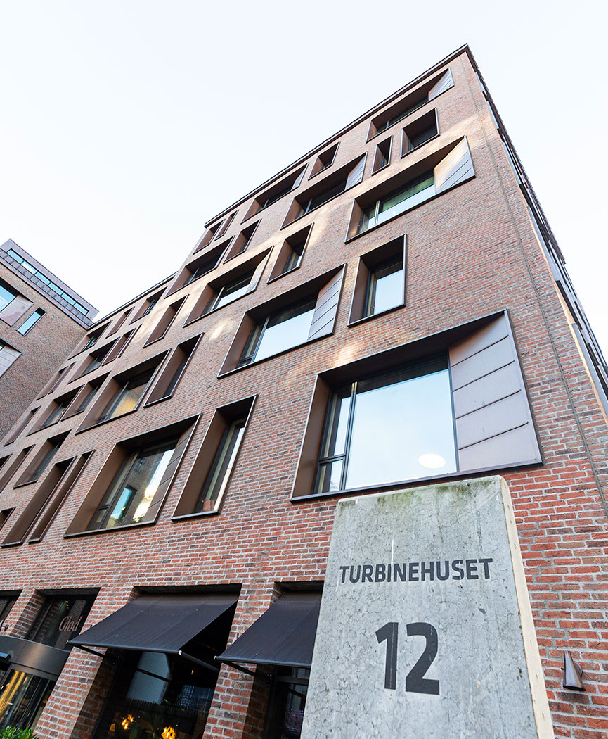 The building is DGNB gold-certified and thus sustainable on many levels. The façade features red Rustica bricks and beautiful details with tombac covering at the window sections. The turbine house was conceived and designed by Danielsen Architecture in collaboration with Tetris, as a durable and well-thought-out office building - but is also in many ways a modern and flexible building.