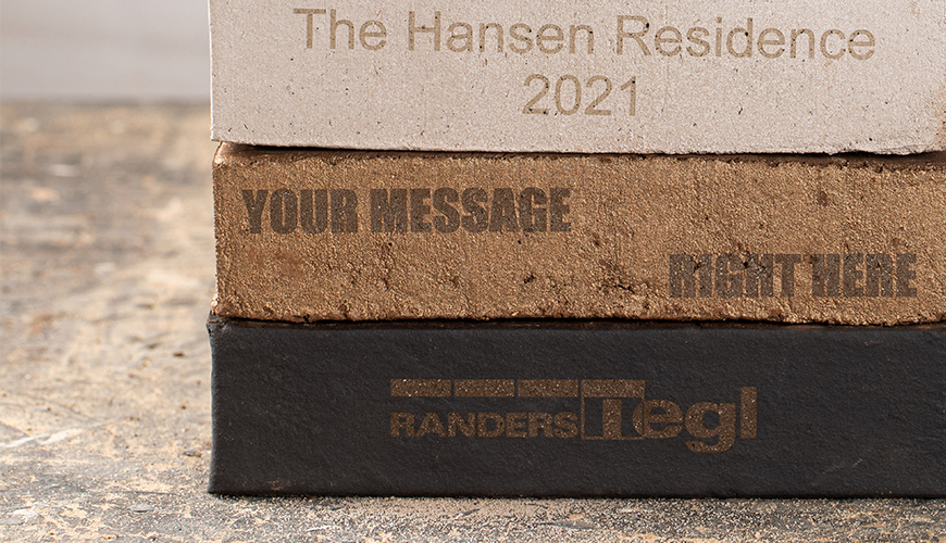 Drømmer du om en unik fasade – eller vil du by dine gjester velkommen med et budskap ved hoveddøren? Vi har teknologien til å laser-gravere budskaper og grafikk direkte i mursteinens overflate.